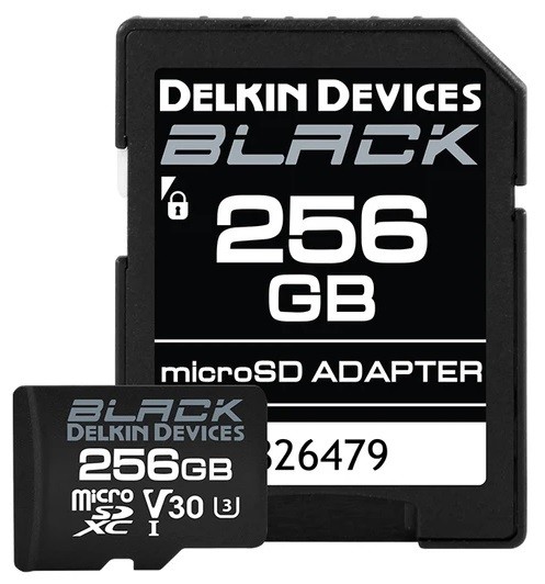 microSD cards»DELKIN»Delkin microSD 256 GB. Black Rugged (V30) R90/W90 w.SD adapter»(new)