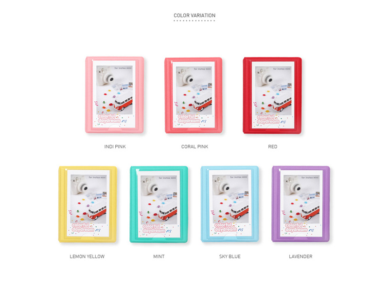 Available in many fancy colours. Pockets for 28 pictures and one extra pocket on the front cover.