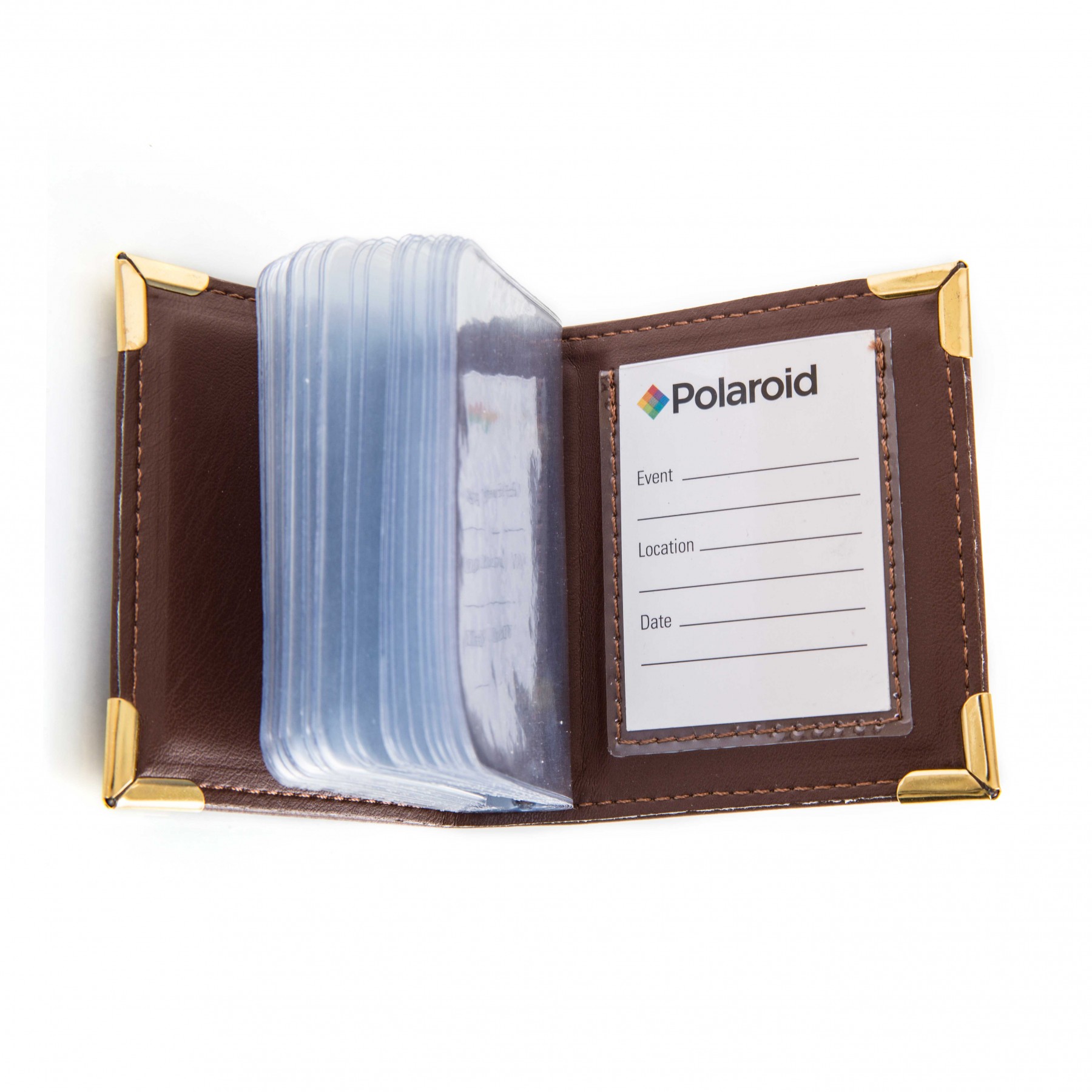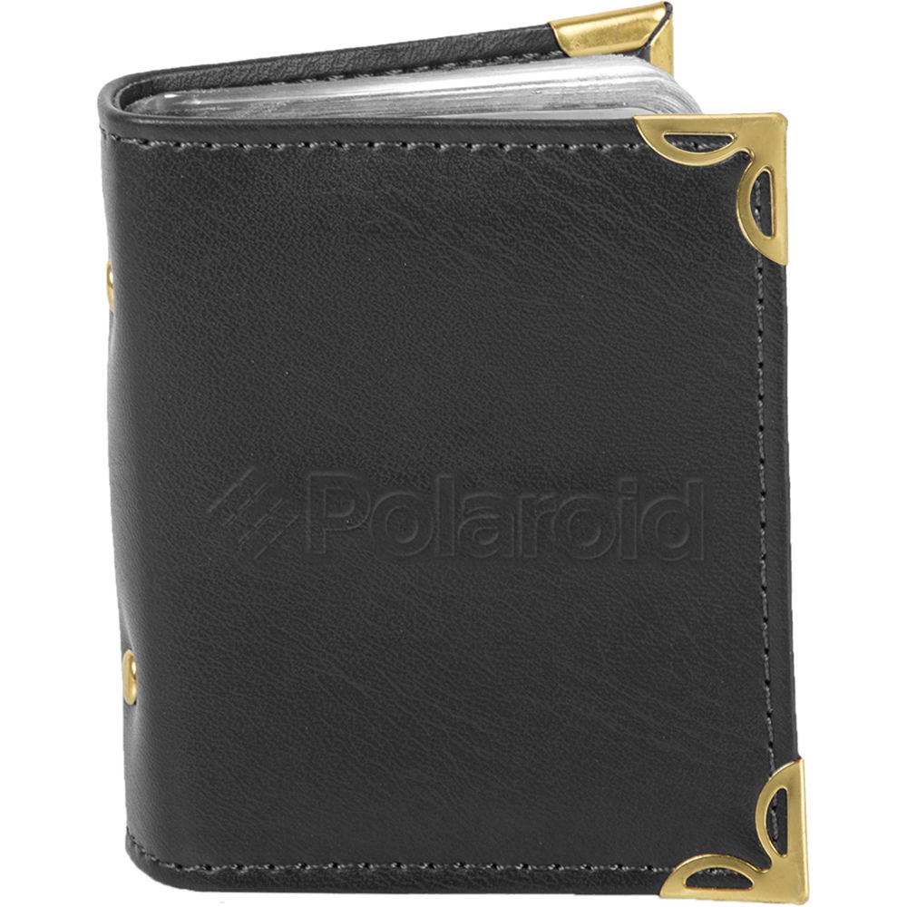 Store and protect your 2 x 3" ZINK photos ( MINI ) in this black 2 x 3" Photo Album from Polaroid. ( MINI ) It has 24 clear top-loading pages that allow you to look at the images you put in. Each page also hold two images, one on each side. The outside of the album is a leatherette material with brass corners and it has Polaroid branding on the front cover. Additionally, you can leave a memo as to when and where the images were take in a specific area on the inside of the back cover.