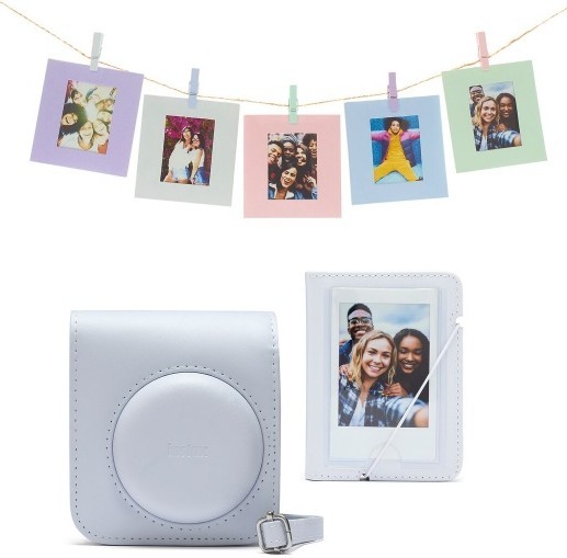 FujiFilm Instax Mini 12 Accessory Kit is the perfect addition to your Instax Mini 12. The kit includes an Instax Mini 12 Camera Case with adjustable straps, a photo album ( 29 foto ), 10 paper cards, 10 pegs and twine.