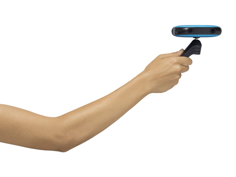 Works both as a handle and a tripod.