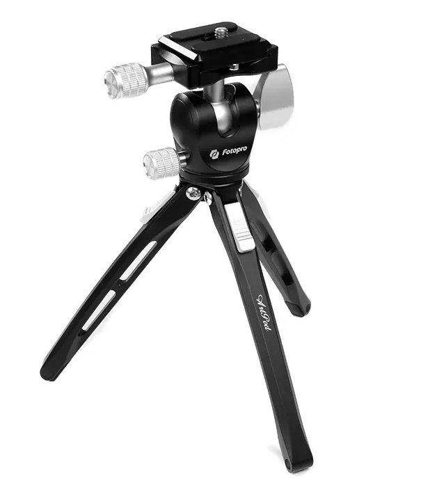 The compact and super sturdy ArtPod Tabletop Tripod from Fotopro is a CNC-machined aluminum support with a black anodized finish that protects the tripod from oxidation and scratches. The 2kg support has a maximum height of 19cm and a minimum height of 12cm, due to multi angle legs.