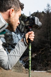 The top of one pole’s handgrips features an integrated camera mount with quick wheel attachment, which permit its use as a convenient monopod.