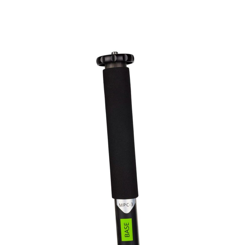 Genesis MPC-3 monopod is made of carbon fiber. As a result, the monopod combines such properties as: low weight, resistance to mechanical damages and long service life. Genesis MPC-3's maximum height is 166 cm. Maximum allowed load is approx. 20 kg. The monopod is equipped with a wide insulated foam handle to ensure a good grip, and a standard 3/8" thread allowing for a film or photo head to be mounted. Leg sections are fastened by twist-locks. Each section is separated by a sealing flange to prevent dirt, fine sand and dust or dampness from getting caught inside. The device ends with a metal spike hidden under a rubber foot, increasing the monopod's stability. Main features:
