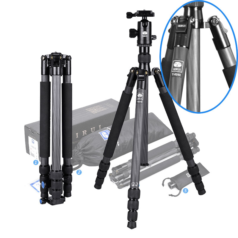 SIRUI T-004X tripods have a stylish, colorful appearance that makes it look like works of art! The SIRUI Aluminum series tripods comes in Blue, Red or Black, weight only 0.9 kg and hold up to 6 kg. T-024X in Carbon fiber gets light weight - only 0.7 kg, load capacity 6 kg, impressive stability and reduced vibration characteristics from its 8 layer 100% Carbon Fiber legs.