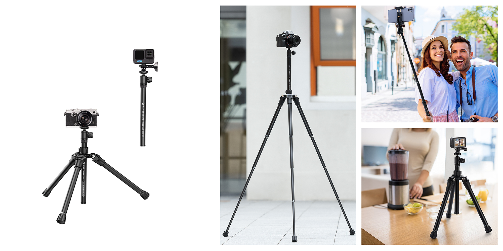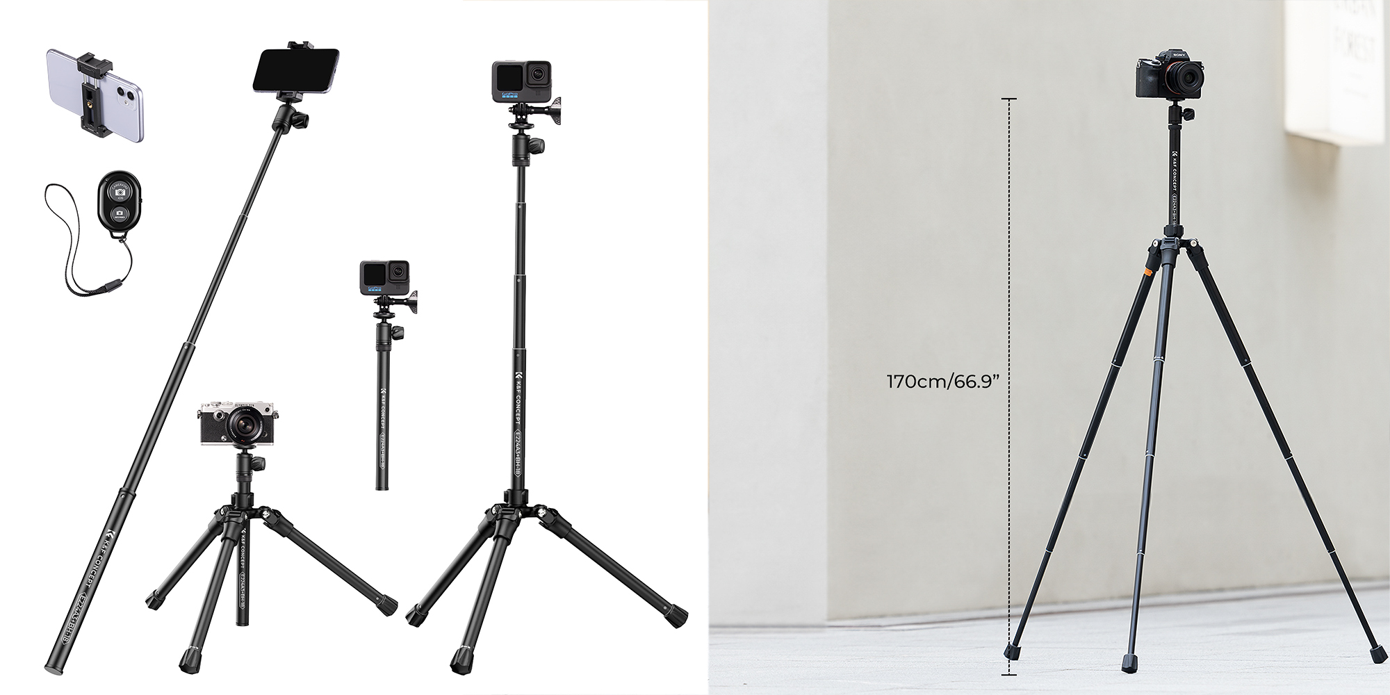 The K&F Concept E-series E224A3 phone tripod with BH-18 ball head is an ideal choice if you want great height when extended and compact dimensions in the transport position. It will be an ideal choice for any photography enthusiast who moves frequently. Its ergonomic design allows you to transform it into a selfie stick, monopod or desk ministat in a snap. Whether you’re traveling, recording vlogs or streaming live from your bedroom, the K&F Concept E-series E224A3 will always be an invaluable support.