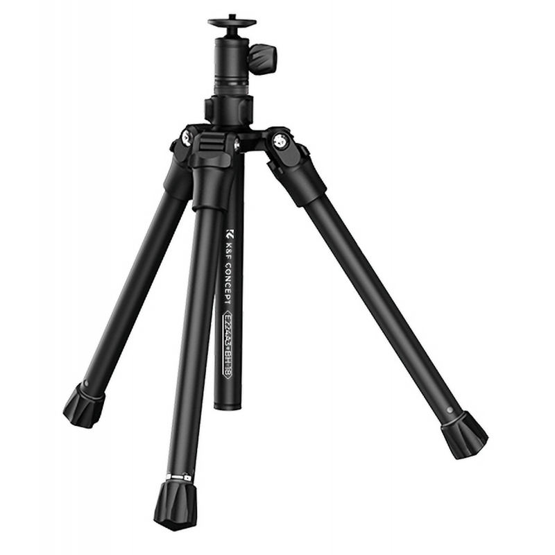 Thanks to its ergonomic design in ultralight aluminum, the K&F Concept E-series E224A3 phone tripod with BH-18 ball head guarantees instant unfolding and folding. The 4 sections of the central column and 4 sections of each leg allow you to take advantage of a wide working height range – from 36 to 170 cm. Despite its impressive functionality, the folded tripod is only 30 cm long. The whole thing weighs only 963 g.