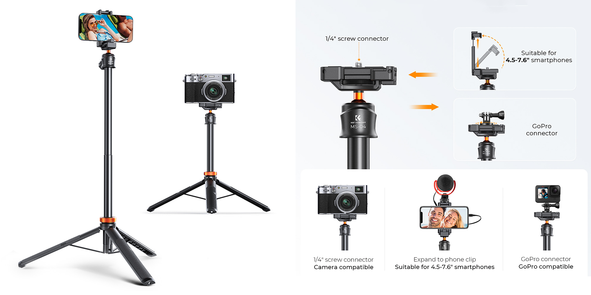 model: K&F Concept 2-in-1 Selfie Tripod with Phone Holder