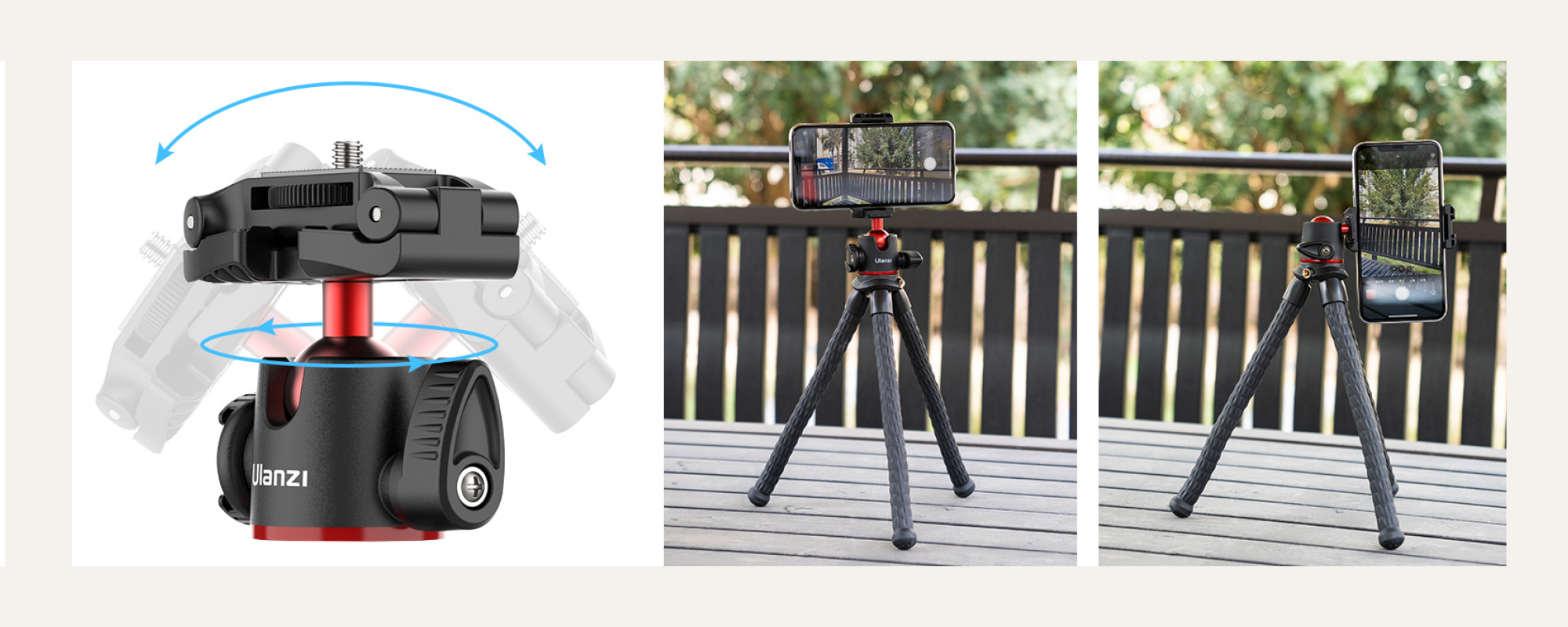 Instead of carrying an extra mount, simply unfold the one you already have on your tripod. The Ulanzi MT-33 has an integrated, foldable mount compatible with smartphones between 60 and 85 mm wide. With it, you can get ready to record in no time – no fuss, no screws, no adapters. In just a few seconds, the whole setup will be ready for recording or taking photos with your smartphone.