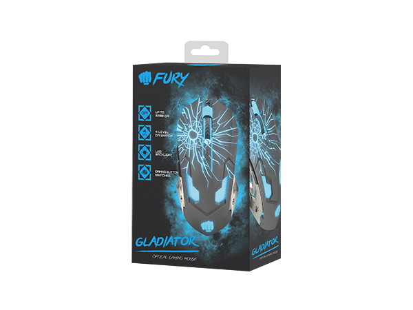 Fury Gladiator OPTICAL [3200DPI], RGB LED light, Black, Wired Optical Gaming Mouse
