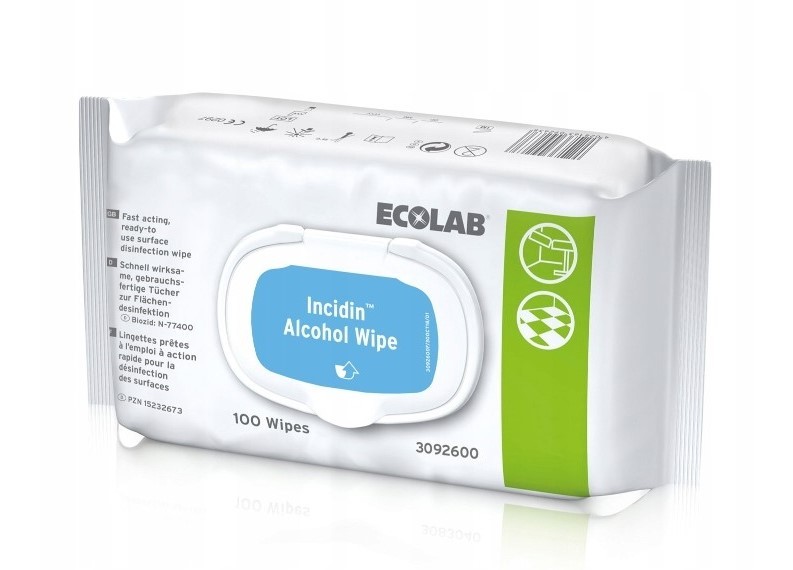 The Ecolab Incidin Alcohol Wipe offers a wide range of microfighting effects (including Noro) with short action times. The properties of the applied preparation allow to use it both for routine disinfection and in case of epidemiological outbreaks. The high effectiveness of the product on surfaces has been confirmed on the solution pressed from a tissue.