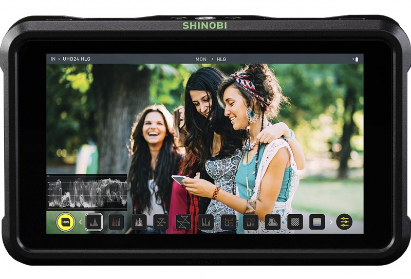 The Shinobi 5.2" 4K HDMI Monitor is a 5.2" on-camera monitor that monitors DCI 4K, UHD 4K, and HD video input. It features a 10-bit FRC IPS screen with a brightness of 1000 cd/m², which makes it suitable for use in both exterior and interior conditions. The AtomHDR display technology allows you to accurately monitor your log gamma footage without having to view flat, washed-out looking images or use a LUT to compress the dynamic range and color space. The monitor supports popular log formats from Sony, Canon, Panasonic, ARRI, RED, and JVC cameras.