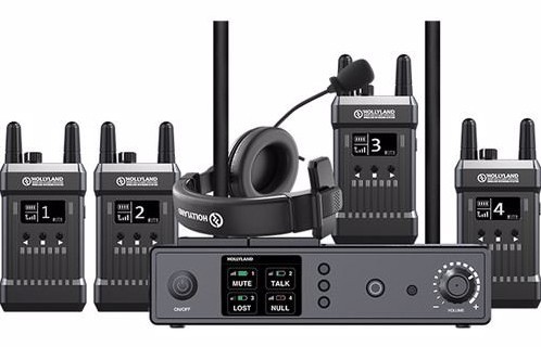Ideal for broadcasting, training, and meetings, the Hollyland Full-Duplex Intercom System with Four Beltpack Transceivers allows two-way communication at a range of up to 300 meters.