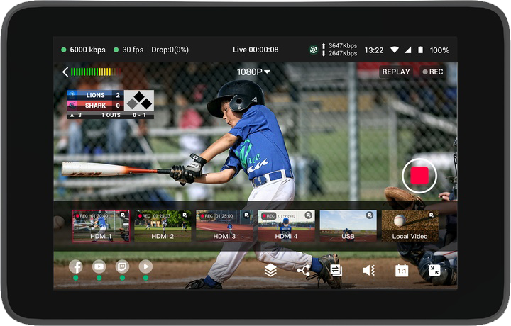 YoloBox Ultra ļauj pieslēgt vai apvienot līdz pat 5 interneta avotus - 4G LTE mobilo sakaru, WiFi, Ethernet un USB donglu - vienā ātrākā un uzticamākā savienojumā, nodrošinot stabilu tiešraidi. Intuitīvajā 8" skārienekrāna displejā ir redzams straumēšanas attēls, ievades plūsmas un vadības saskarne, kas ļauj viegli pārslēgties starp dažādiem avotiem ar vienkāršu pieskārienu. Turklāt YoloBox Ultra nodrošina HDMI izeju, kas ļauj jums attēlot straumi lokāli uz papildu HDMI displeja, lai to ērti pārraudzītu.