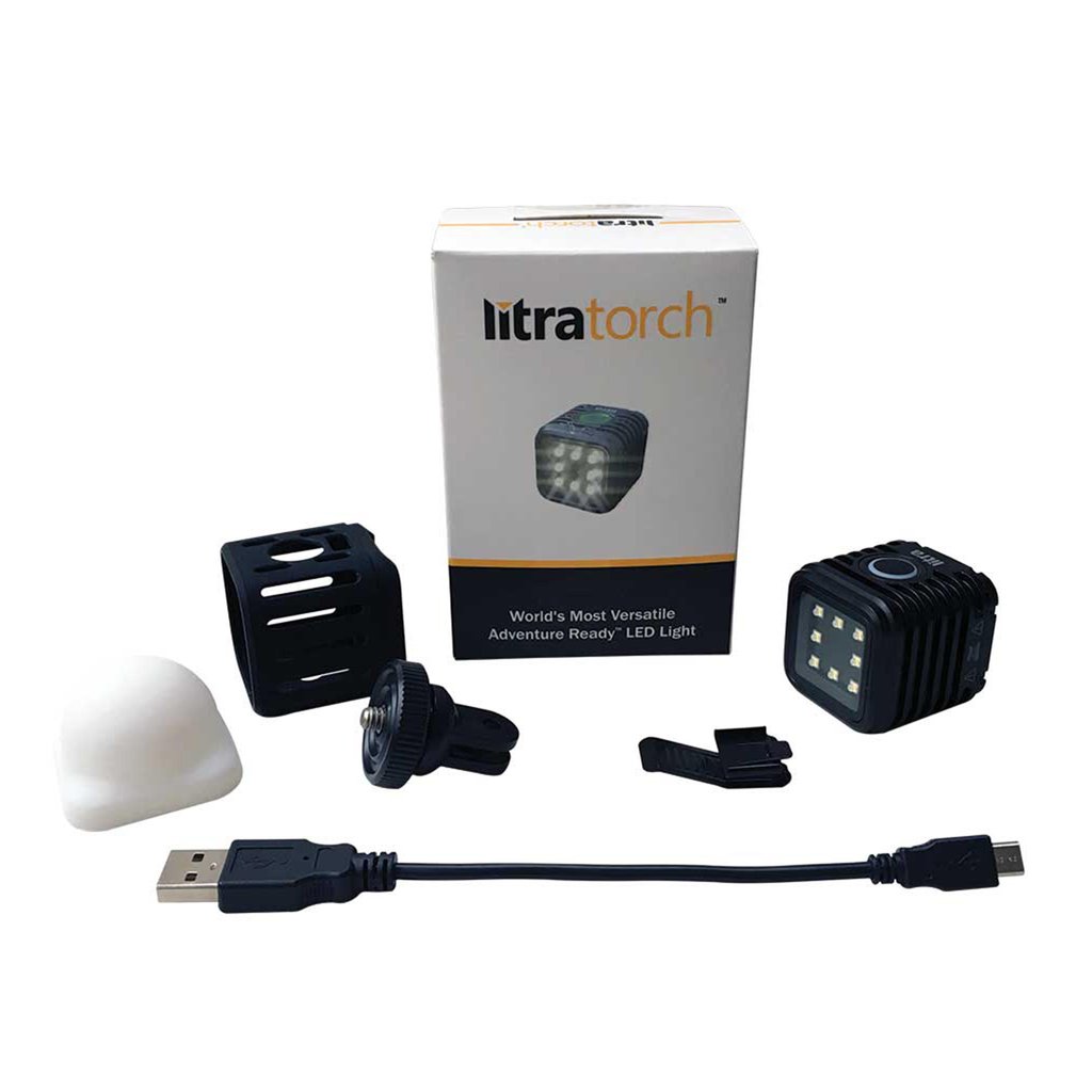 The light offers a run-time of four hours in low mode and 35 minutes in high mode. The 80° beam angle matches the camera view with no hot spots or harsh edges. The LitraTorch can also be used with your camera for flicker-free slow motion video recording. It also comes with two built-in 1/4"-20 standard mounting holes, an embedded magnet, a GoPro mount, belt clip, silicone sleeve, and slip-on diffusion. The fixture meets MIL-STD-810G standards and is water-resistant up to 30'. In addition, it can withstand drops up to 4'.