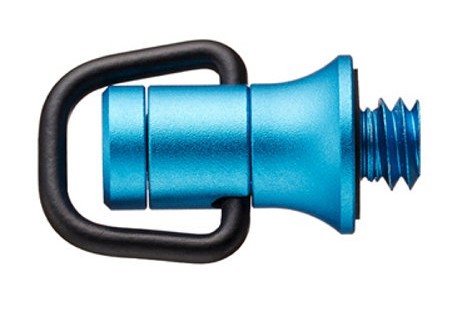 This blue Strap Attachment from Ricoh screws into the base of the Theta camera and allows users to attach a strap.