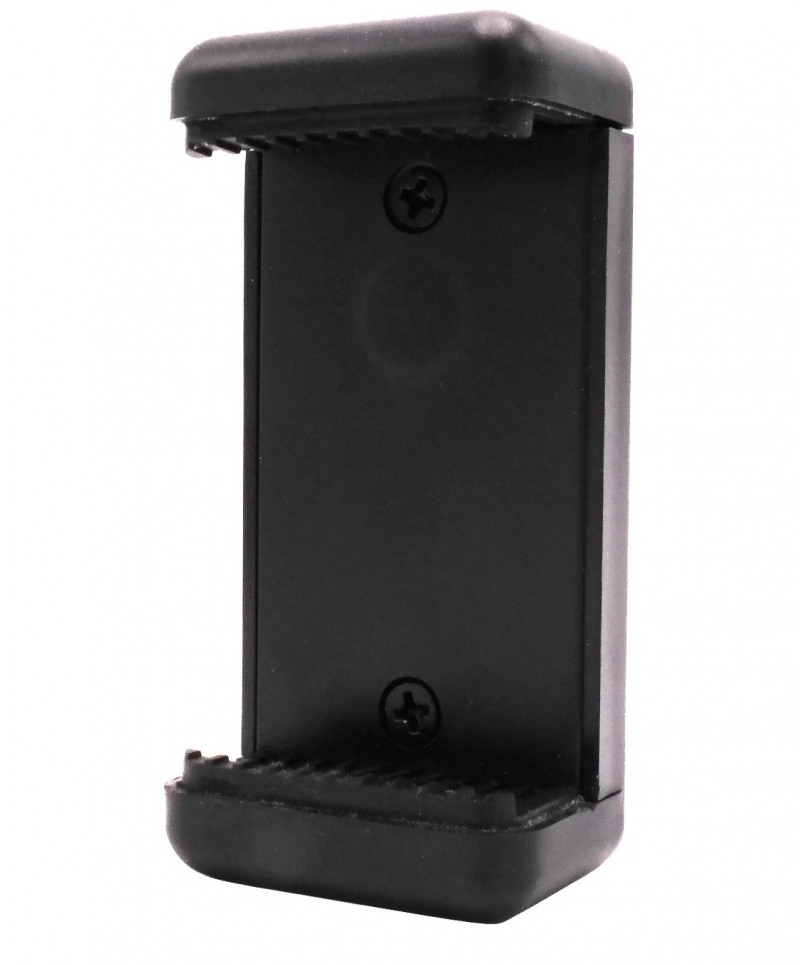 The Caruba Universal Phone Holder Pro is a lightweight smartphone holder, suitable for all smartphones with a width of 53 to 83 millimetres. Thanks to a 1/4" thread on the bottom and on the back, you can attach the Phone Holder Pro to a tripod or selfie stick. By folding out the stand at the back, the holder can also stand on its own, which is handy when you want to watch videos on your phone or make video calls.
