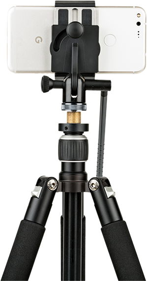 Connect this professional grade smartphone mount to any tripod to capture smooth content, in landscape or portrait mode, perfect for recorded video or live streaming.