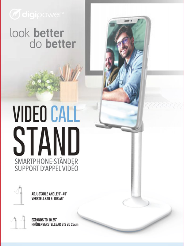Viedtālruņa videozvanu statīvs noregulē leņķi no 0 līdz 45 grādiem. Tas ir pagarināms līdz 26 centimetriem. Statīvs tur tālruni uz pretslīdes virsmas stiprinājuma, lai jums nebūtu jātur tālrunis uz augšu, strādājot, mācot, mācoties vai jebkuras svarīgas video konferences laikā.
