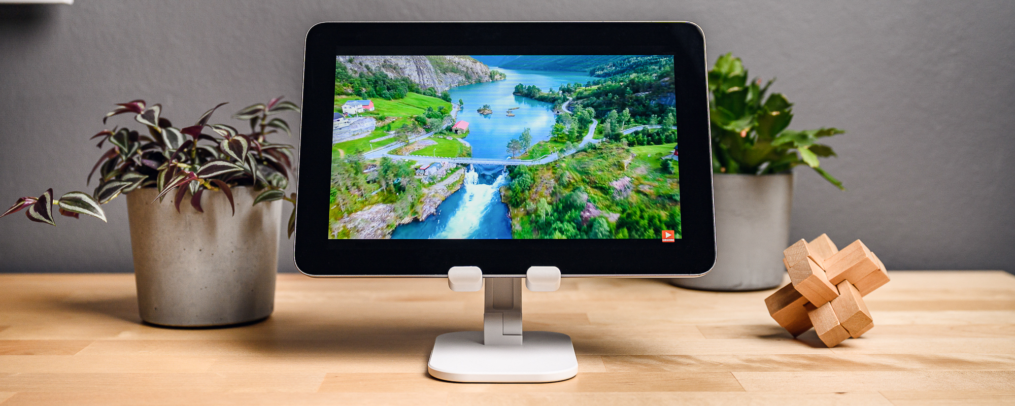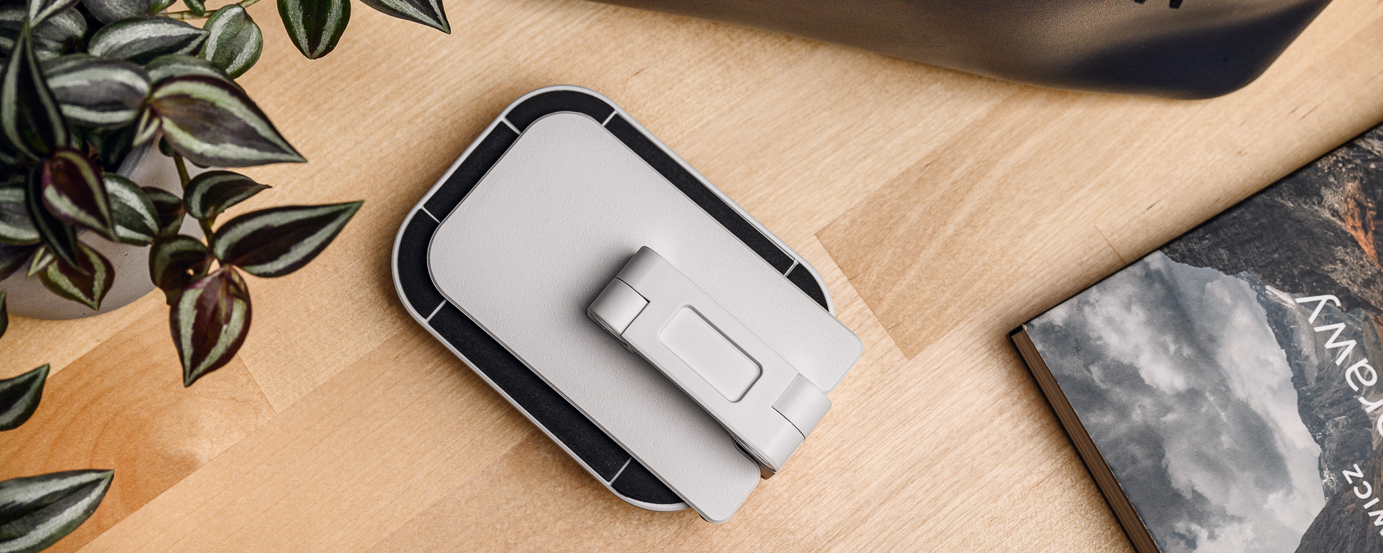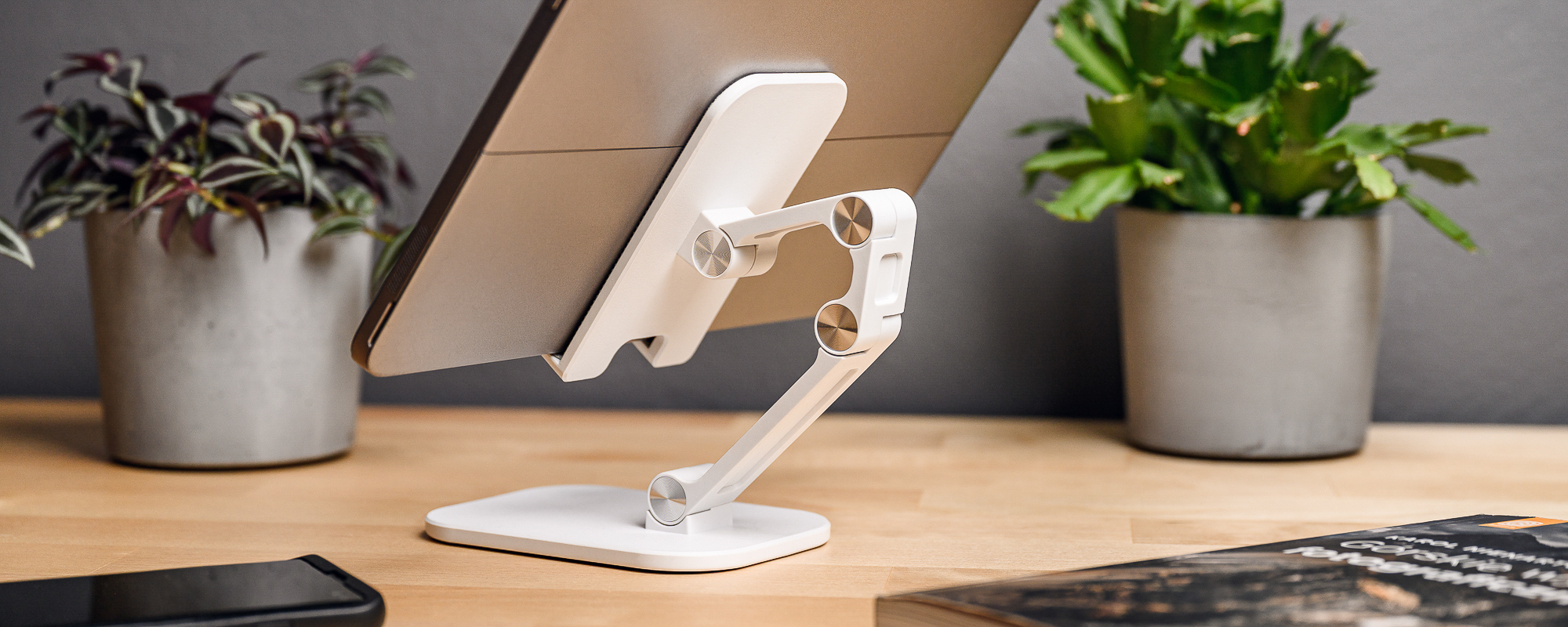 The stand is extremely sleek and takes up very little space on your desk. It will match the decor of a modern apartment or office. It is available in two classic and very universal colors, white and black.