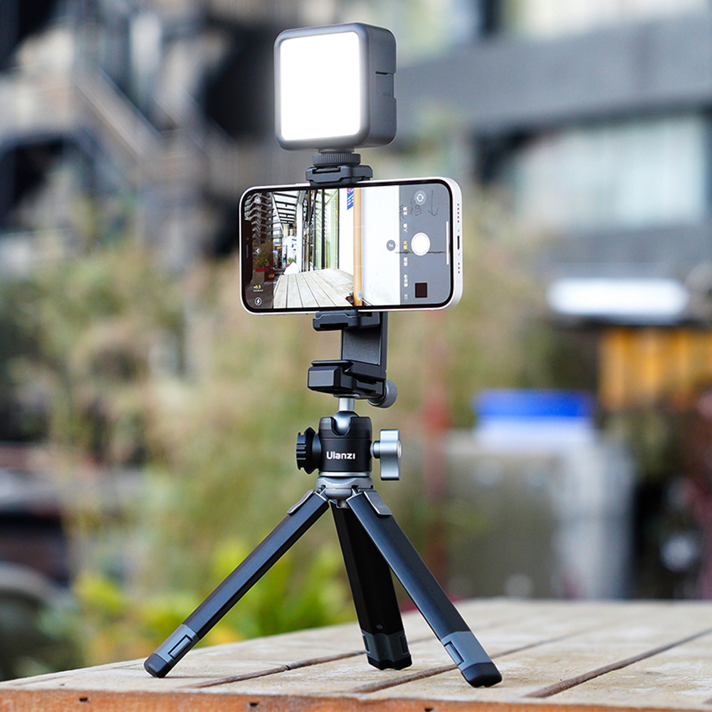 Crafted with vloggers and streamers in mind, the Ulanzi ST-22 Phone Tripod Mount elevates your mobile productions. With two cold shoe mounts, effortlessly attach a light, microphone, or other accessory. The 1/4"-20 threaded tripod hole at the bottom allows easy mounting on a tripod or selfie stick.
