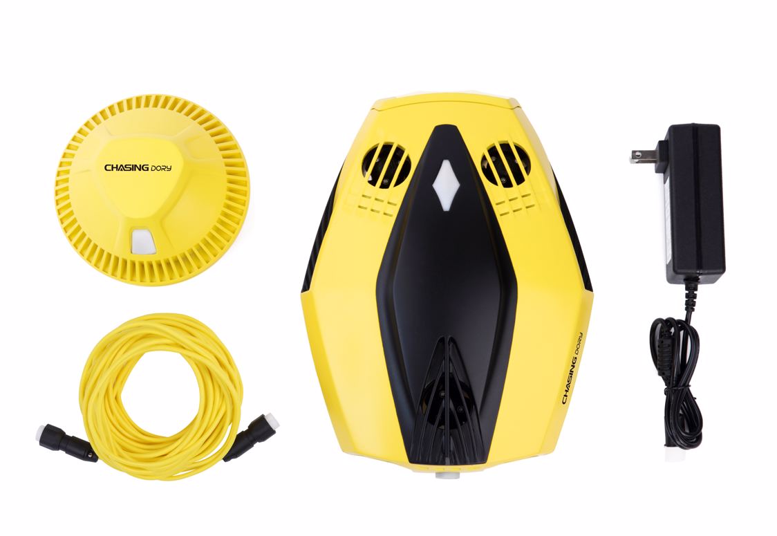 The compact and portable underwater drone Chasing Dory is designed just as much for pleasure as for work. Equipped with a camera that records video in full-HD (1080p), fast optics, built-in LED headlights and the ability to dive down to 15 meters, this is the right gadget for those who lack a diving certificate but still want to experience and document the world beneath the surface.