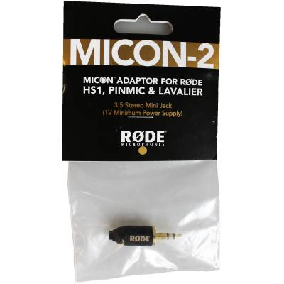 This Rode MiCon 2 Adapter is intended for use with all Rode headsets and microphones that utilize MiCon connectors, such as the Rode Pinmic and lavalier microphones. The adapter features a stereo 1/8" (3.5mm) mini connection for use with an array of wireless systems. The MiCon-2 is designed to connect to a standard 3.5mm stereo minijack, with a power supply of 1V minimum.