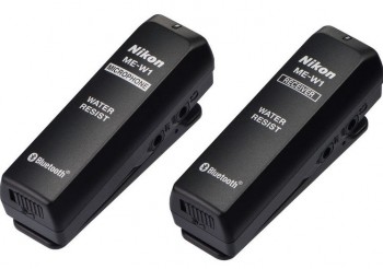 Record monaural audio from subjects from up to 164' away with the water-resistant ME-W1 Wireless Microphone Set from Nikon. The mic uses Bluetooth connectivity and is compatible with all Nikon DSLR, Nikon 1, and COOLPIX cameras that have a 3.5mm microphone jack. The set includes a microphone, receiver, windscreen, audio cable, and a case.
