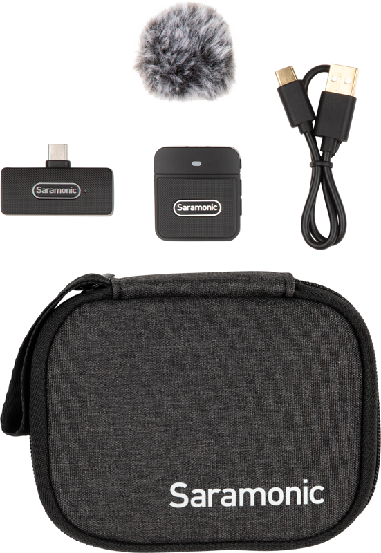 Ultracompact 2.4GHz Dual-Channel Wireless Microphone System Saramonic Blink100 wireless microphone system is an ultracompact and portable 2.4GHz wireless microphone system, compatible with smartphones, tablets, DSLR cameras, camcorders, etc. The Blink100 system features automatic pairing and selectable noise cancellation, delivering broadcast-quality sound, ideal for live streaming, vlogging, mobile journalism, and more.