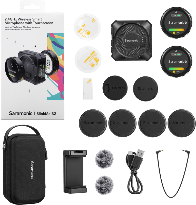 The Saramonic BlinkMe B2 is a wireless audio transmission kit like never before. The patented design of the receiver acting as a charging station for the transmitters, magnetic mounting system, TFT touchscreens, personalization of wallpapers on the displays, long operating time, 8 GB of built-in memory and mobile app support are just some of the main features of this unique equipment. The kit also offers noise cancellation, the ability to transmit signals to 2 devices simultaneously (TRRS and USB-C jack), and 100 meters of range. The BlinkMe B2 is an ideal choice for vloggers, journalists, streamers and filmmakers who appreciate professional sound quality and the convenience of a wireless transmission system.