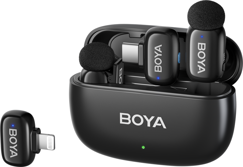 Boya Mini-12 Ultracompact 2.4GHz Wireless Microphone System with lightning + USB-C (Black)