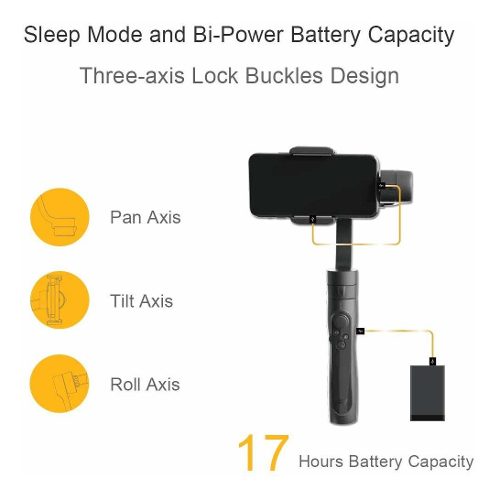 The included FV Share app (free download), opens up creative possibilities with features such as motion delay, intelligent tracking, panoramic photo capture, Hitchcock zoom, slow motion, photo/video editing, POV mode, orbital shots, a beauty enhancer, and looks filters. The app wirelessly syncs up with the gimbal's buttons while also providing touchscreen control. The gimbal's built-in battery provides up to 17 hours of operating time and is rechargeable using an included USB cable. Phone batteries don't last as long, so to power your phone beyond its normal runtime, FreeVision offers optional L-shaped cables (see Accessories tab) that let you connect the phone to an external USB power source, such as a USB power bank. The 3.3' cables provide the distance for you to keep the USB power source in a pocket or even in your hand while operating the gimbal.