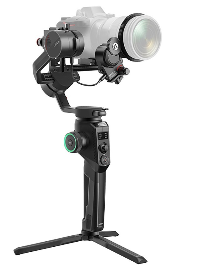 Moza's AirCross 2 Professional Kit includes the AirCross 2 gimbal with all its standard accessories plus an iFocus-M Wireless Lens Motor, Arca-Swiss Quick Release Plate, and a shoe-mount Phone Holder.