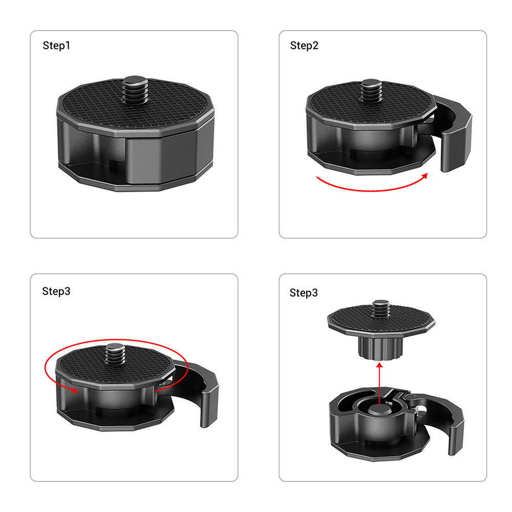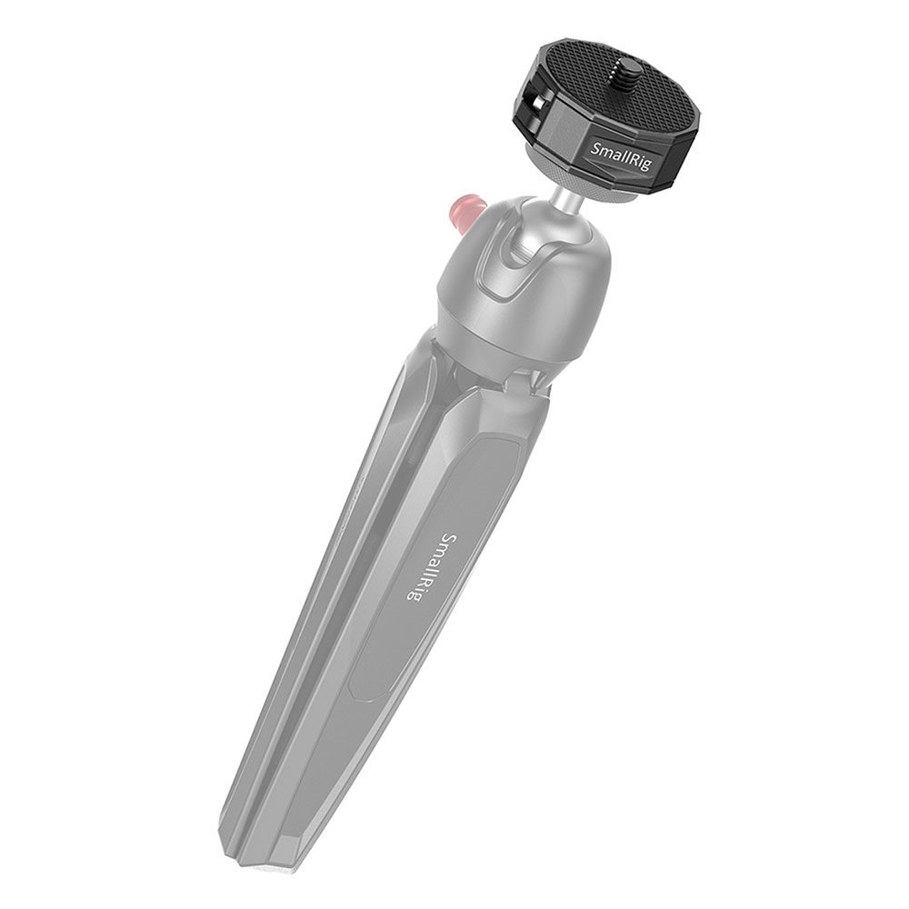 SmallRig Universal Quick Release Adapter BSS2714 is designed for instantly attaching mini tripods and monopods to gimbal stabilizers or camera accessories. The mini tripod can easily be moved by detaching the knob. Featuring a 1/4"-20 male/female design, and consists of two parts, with one screw onto the tripod/monopod and the other to the gimbal's or camera's tripod mount. The adapter prevents having to screw and unscrew a tripod/monopod each time. It can also be separated from the gimbal with various other 1/4"-20 accessories, such as monitors, lights and camera/phone cages. Pocket size and weight only 38g, easy for storage.