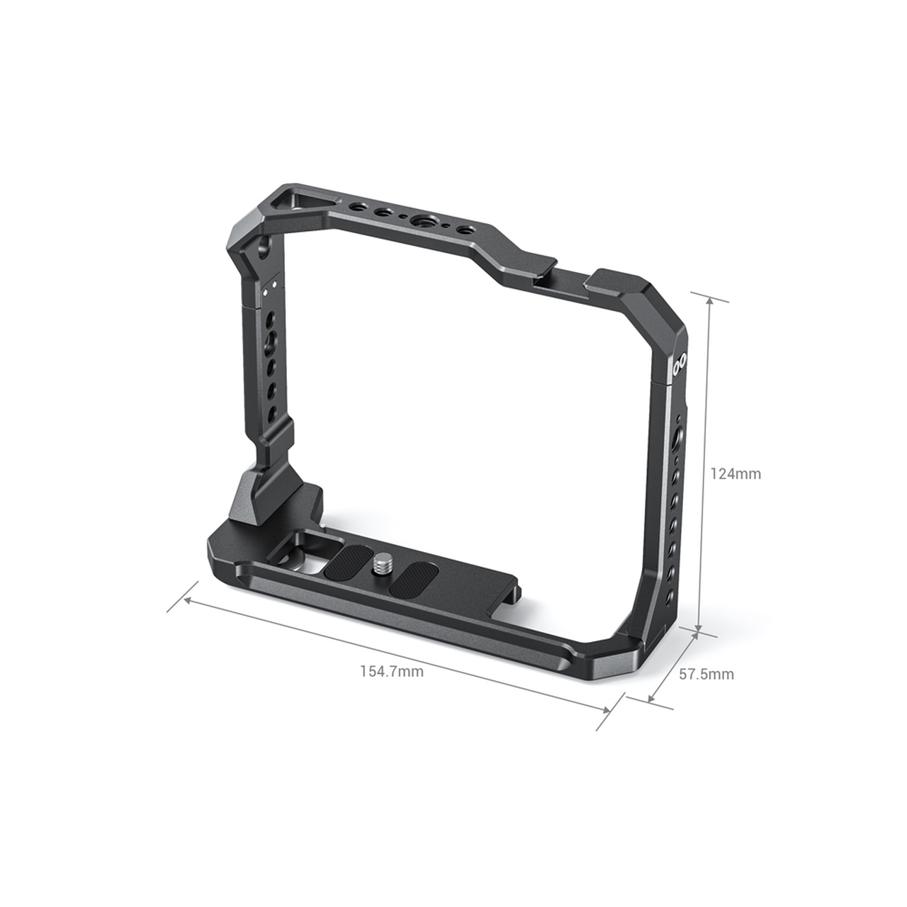 Featuring multiple 1/4”-20, 3/8”-16 and ARRI 3/8”-16 accessory threads for accessories, such as Top Handle 2165, Side Handle 2093 and Monitor Mount BSE2348. The cage integrates with a cold shoe on the top for microphone and light. You can also attach the HDMI Cable Clamp 1679 to protect HDMI cable. The bottom integrates with Arca Swiss plate and a flat head screwdriver is included to secure the camera screw and stores on the bottom of the cage. Additionally, the cage is compatible with Peak Design strap on the bottom.