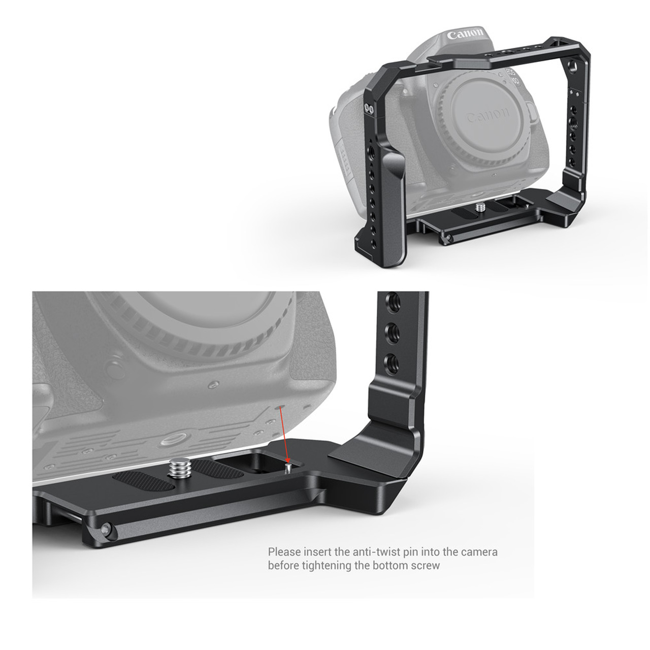 SmallRig Cage for Canon EOS 90D 80D 70D Camera CCC2658 is a formfitting full cage designed to provide protection and accessory mounts for your camera. The cage secures to the bottom of camera via a 1/4”-20 screw and features an anti-twist pin for further secure to prevent twisting.