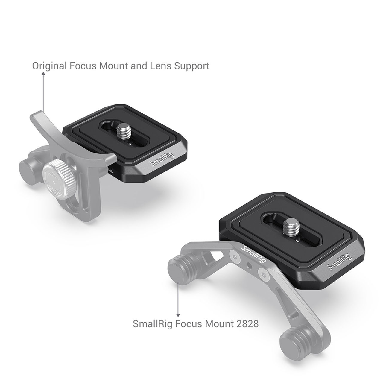 SmallRig Camera Riser Plate for Moza AirCross 2 2827 is designed to help balance the camera baseplate from the horizontal direction on AirCross 2 gimbal, as well as increase the distance between the lens center and the pitch axis when vertical shooting. The plate secures to the middle of the L bracket and baseplate with an included long 1/4"-20 screw and locating pins to prevent twisting. Featuring three m3 threads in front which is compatible with SmallRig Focus Rod Mount 2828, the original single focus rod mount and lens support. It comes with a rubber pad to prevent the baseplate from scratching. The original baseplate is able to adjust 64mm on the horizontal direction after attaching the riser plate. Besides, when using a small, lightweight camera with a wide, heavy lens, you can also use this camera riser for additional support to increase the compatibility.