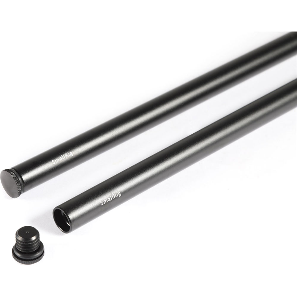 Lightweight yet durable, this pair of 18" black 15mm Aluminum Rods from SmallRig is designed for mounting accessories on your camera rig.