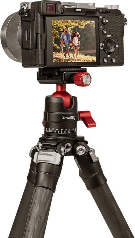 2. Ball head with knob supports multi-angle adjustment and quick switch between vertical shooting and horizontal shooting.
