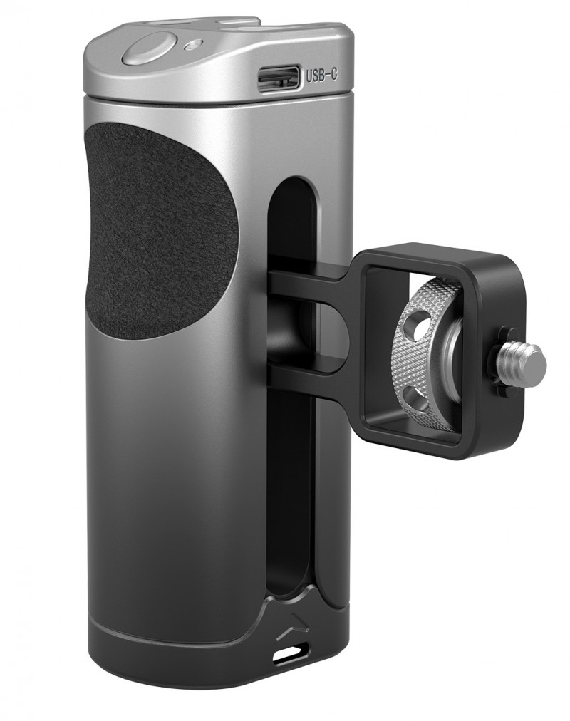 SmallRig Side Handle with Wireless Control for Cellphone 3838, comes with a built-in rechargeable wireless remote control module, supports to control the camera of most Android and Apple smartphones to start or stop the recording, thus improving shooting efficiency and experience. Features a cold shoe mount on the top of the handle for attaching microphone or LED light for more professional shooting. The handle can be used on the left or right hand by adjusting the handle connector also can be moved up and down according to the center of gravity and position of accessories for a better grip experience. The surface of the handle is made of aluminum alloy with gradient anodizing, which makes it durable and visually impressive. Also, it comes with hole at the bottom for attaching hand strap to prevent accidental falling during shooting.