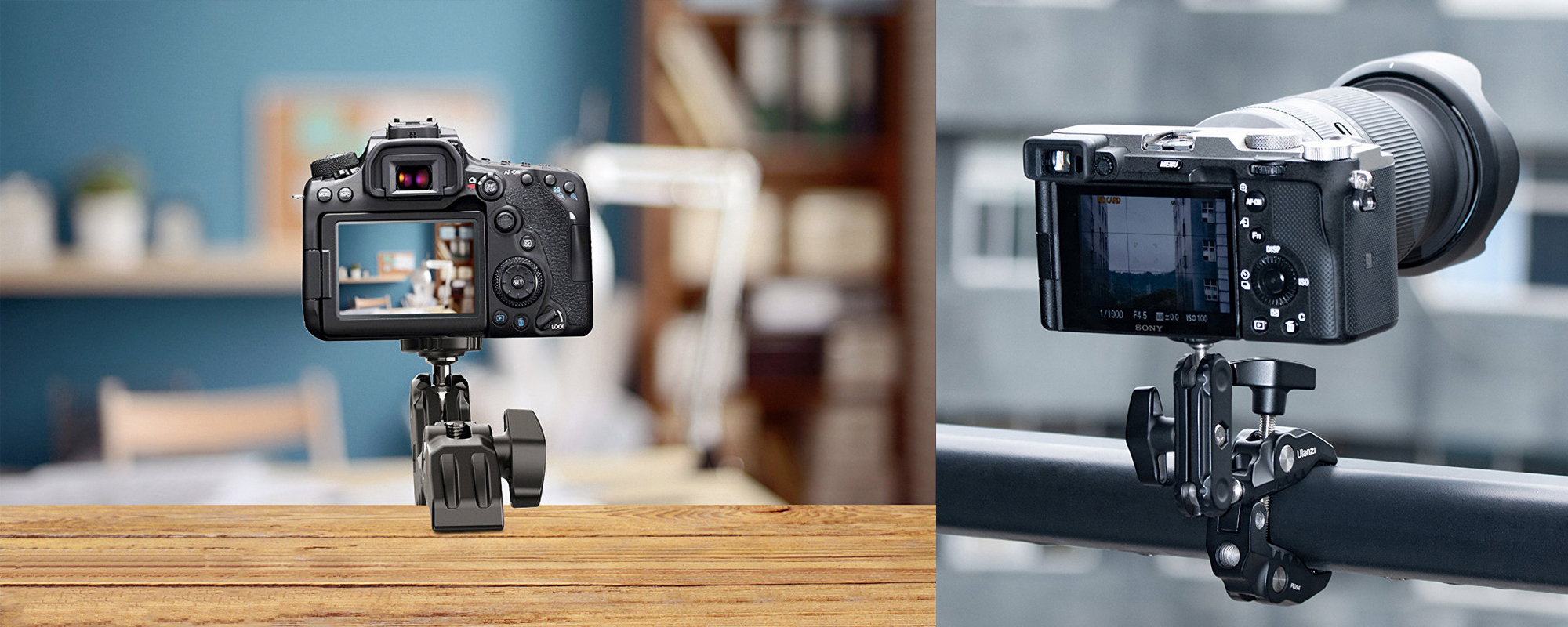 The ability to change the angle of the 1/4″ threaded platform and the module connected to the vise give you the ability to precisely position your equipment in preferred positions. This allows you to precisely adjust your photo-video equipment to your needs, without having to reach for large tripods.