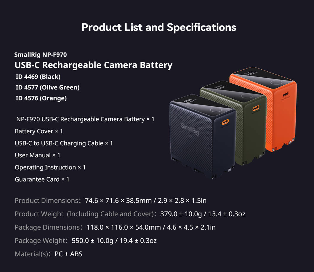 Battery»SmallRig»SmallRig 4576 NP-F970 USB-C Rechargeable Camera Battery (Orange) 10500 mah»(new)