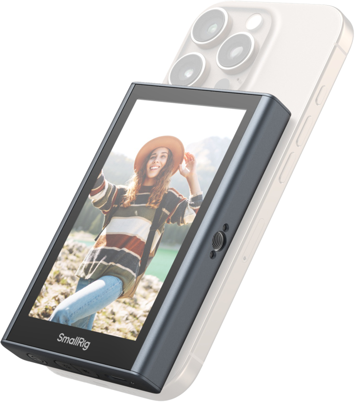 The monitor can be mounted on the phone cage using the Pan-Tilt Head or magnetically attached to iPhones or phones with magnetic rings, offering versatility.
