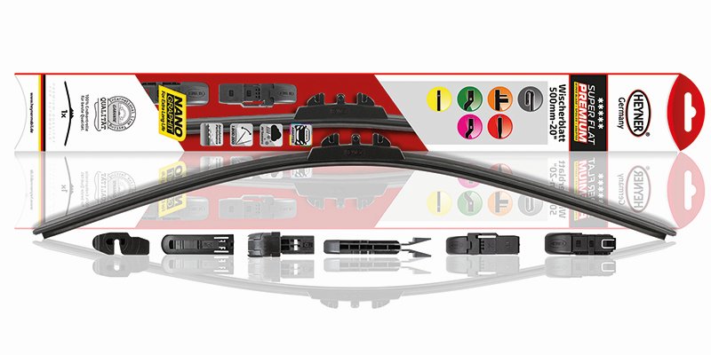 The new SUPER FLAT PREMIUM wiper blade is released in 14 sizes with well-known excellent quality, but first HEYNER® wiper blade in blister packaging.