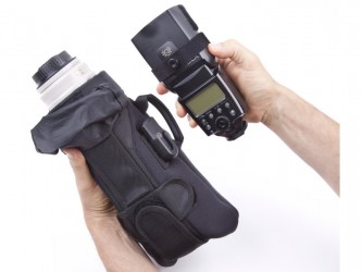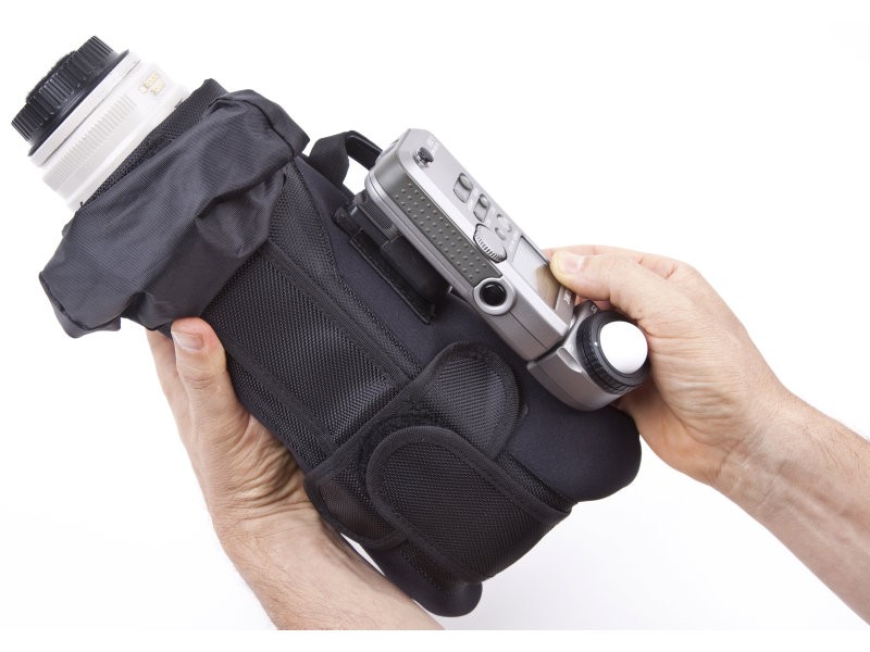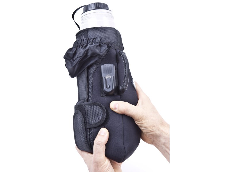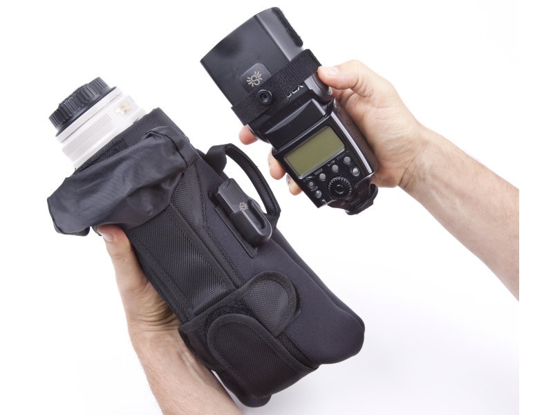 Our Large Lens Pouch includes some ingenious modifications on traditional top-load lens cases. To improve accessibility and enable swapping lenses safely with one hand, the SpiderPro Large Lens Pouch features a water resistant vertical zipper that runs down the middle. This expandable zipper opening also allows for a much easier insertion of Pro lenses (like a 70-200mm) with the hood attached. You no longer need to reverse the lens hood or change the lens’s configuration.