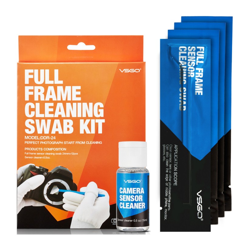 The VSGO Full frame Cleaning Swab Kit is specially designed for professional cleaning of the sensor of your DSLR. This kit contains 12 sensor swabs of 24mm and a vial with 15ml sensor cleaning liquid. The cleaning fluid is non-toxic, environmentally friendly and has an excellent cleaning ability. This kit is ideal for use on location or traveling.