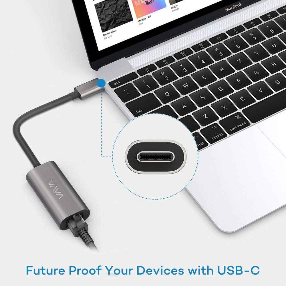 VAVA Gigabit Ethernet Network Adapter Stable Wired Internet Compatible for MacBook Pro 2018/2017, iPad Pro/MacBook Air 2018, Surface Book 2 and More