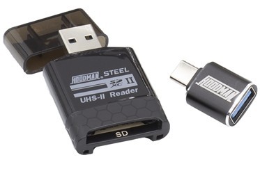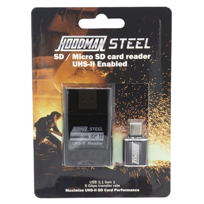 Hoodman Steel SD/Micro SD UHS-II Enabled Card Reader w/USB-C Adapter