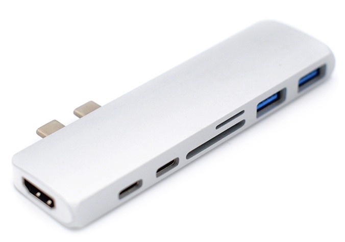 The Caruba Duo hub for USB-C Gray is an adapter that delivers all ports for your MacBook Pro 2016 at once. The adapter is connected to your MacBook Pro using the two USB-C inputs on the adapter. |