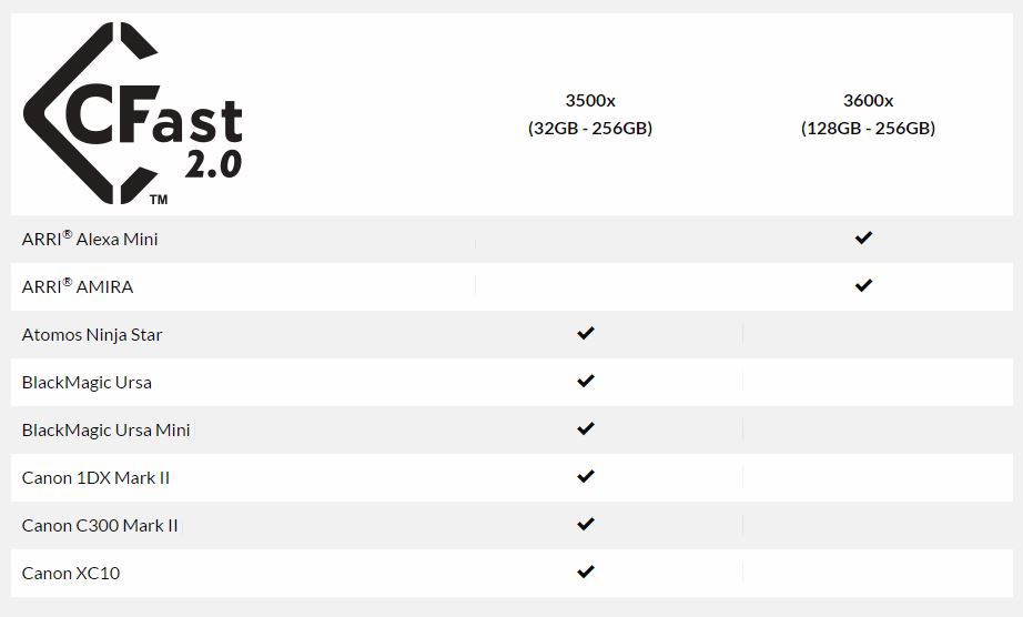 **For a complete list of compatible cameras, go to www.lexar.com/cfastcompatibility